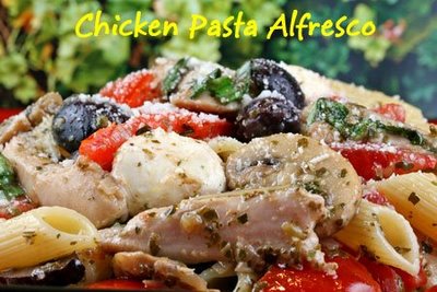 I’m sure you’ve all been waiting with bated breath for this, so here it is. Ladies and gentlemen, and everyone in between, I’d like to introduce you to…….(drumroll please)……..Chicken Pasta Alfresco!
