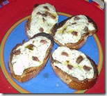 Theresa (The Food Hunter) from The Food Hunter’s Guide to Cuisine brought some beautiful Neapolitan Crostini to my buffet table. They’re a quick and easy appetizer and are just the perfect thing for a party! Theresa hails from Arizona, by way of Philadelphia and is a girl after my own heart. These tasty crostini are covered with a creamy ricotta spread and then topped with anchovies. Anchovies! I love anchovies!