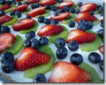 Another Florida neighbor, Judy from No Fear Entertaining sent over this fresh and delicious Fruit Pizza. Can you believe that this elegant looking dish started with sugar cookie mix and a tub of cream cheese frosting? Now, that is some creative cooking!