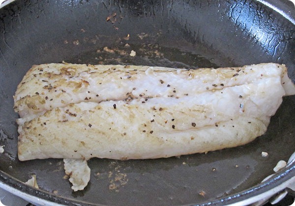 First, you need to get some nice, fresh snapper fillets like this one. Season it with some salt and pepper.