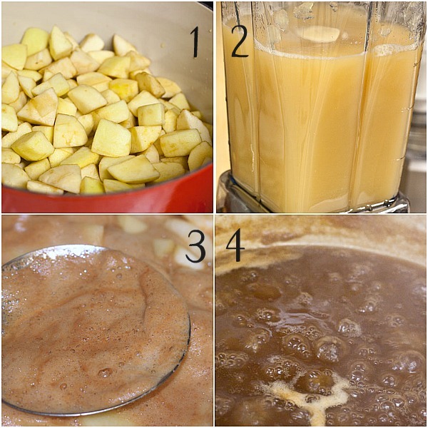 To make the apple butter: Heat a large, heavy pot or Dutch oven over medium-high heat. Add the apples and enough apple cider to just cover the apples. Bring to a simmer. Skim off any foam that surfaces. Continue simmering the apples until they are soft and tender, about 20-30 minutes. Remove from heat and puree in a blender, in small batches. Don’t fill the blender more than halfway or you may end up with a hot mess! The puree should be the consistency of a thin applesauce.