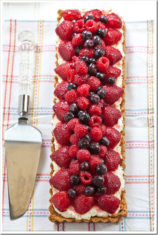 As I was scraping the last bit of my lovely ricotta out of its container, it dawned on me that it would make the perfect filling for a tart. One with fresh fruit – like berries. Strawberries, raspberries and blueberries. A Red, White & Blue Ricotta Tart for the Fourth of July. Hah! Sometimes, I dazzle myself so much with my own brilliance, that I need to wear sunglasses inside.